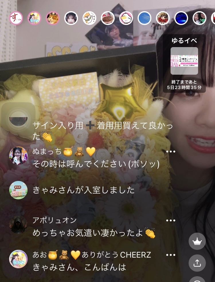 誕生日カウントダウン配信ありがとうございました✨✨お誕生日迎えました〜💛みんなに感謝の気持ちを忘れず今年も全力で楽しんでいきます! 生誕祭も本当にありがとうございました😭💖のちほどちゃんと投稿に写真などメッセージも載せます!感謝しても仕切れない😭 たくさんの方々が来てくださり、本当に感謝感激です!!!ありがとうございました🙇プレゼントも大きな段ボールに入りくらないくらいありがとうございます😭 写真撮って載せます!!! 写真のお花はブリザードフラワーをいただきました!可愛すぎる黄色💛お部屋に飾れるようにしてくれて嬉しい🌼そして、プレゼント企画ではiPhone17Proをいただきました!!! 本当にありがとうございます😭💖憧れの✨推しを全力で可愛く撮ります📸✨✨ 体力限界だー寝ます!みんなもゆっくり休んでね! おやすみなさい💤🌙😴 お誕生日当日今日は22:00〜配信つけます! ゆるいべの方でつけようかな...?せっかくみんなが沢山CHEERしてくださったのでお誕生日10万目指したいし....悩んでつけます!ミクとTikTokもできたら嬉しいな〜!