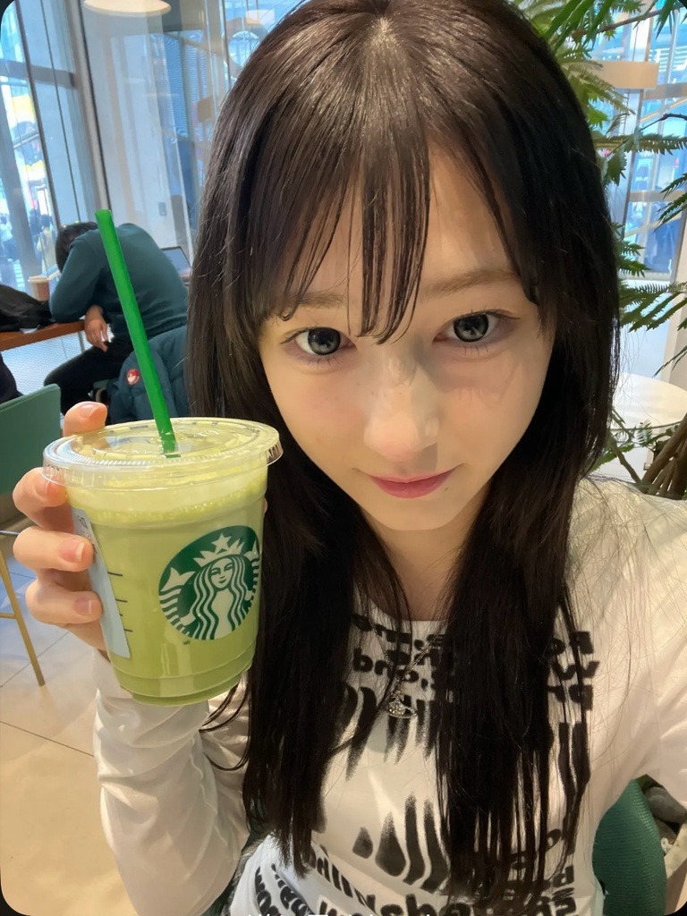 前の写真ー!スタバはいつも抹茶ティーラテ🍵🌿 近くにキオプのベルちゃんが座ってたの🥺🥺初めて好きなアイドルと遭遇して嬉しかった♡ 今日配信するかもー!時間決まり次第配信予約するから来てね〜💟🧁