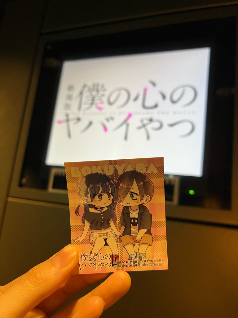 『劇場版 僕の心のヤバイやつ』映画館で鑑賞してきました!🎬 アニメの総集編でもあり、新しいカットも追加された今作🥹 -あらすじ- 市川京太郎は重度の中二病男子。 同じクラスの美少女でモデルの山田杏奈。 ある日、山田が市川の聖域・図書室にやってくる。 おにぎりを頬張ったり、ポテトチップスを食べながら機嫌よくゴリラのような鼻歌を歌ったりと、思うままに振る舞う山田。 予測不能な姿を見る度に、市川は徐々に目が離せなくなっていき… すれ違いや不器用な想いも乗り越えて、 ゆっくりと二人の空気と距離へと変わっていく… というお話です! アニメでは2クール放送されていて、 今回は総集編プラス新たなカットが追加されている作品となっています! なのでアニメや原作未読な場合でも十分楽しめる作品だと思います🙂↕️ 映画を観て、 大きな画面や音声がクリアに聞こえる分 今まで気付けなかった新たに気付いた所があって、 まずは山田のスマホケースが変わっている所! そして市川は山田が発した言葉を聞き逃さずに 覚えているからこそ、 落ち込んでいる山田に、飲みたい!と発言していたことを覚えていてミルクティーを買ってあげようと思い付いたり、 ADの意味に気づいたり… 山田が市川に対して直接会話をしていなかったことを 聞き逃さずに常に相手を思いあっているという… 本当にそんな2人の関係性が尊い…!🥹 山田が市川を見つめる目も本当に可愛らしいのです🥹 そして、今までのアニメシリーズにてオープニングテーマ、エンディング曲を担当されていた こはならむさんによる「神様の秒針を壊した」 あたらよさんによる「春となり」 2曲が入るタイミングがとても素敵で、 総集編だから「あ…あのシーンが…」となるところも、 挿入歌と合わせて映像に流れたりして 幸せな気持ちになりました☺️✨ こんな2人の時間があったよな🙂↕️と心の中で 唱えながら温かい気持ちになりました🍀 そして、漫画の付箋のシーンを観た時に、 私もオーディションで出しきれずに 悔しくて納得するまで演技を動画に撮影して 監督さんに送ったことを思い出しました🥺 そしてやっぱり何度見ても刺さるのが 卒業式の送辞のシーン… 自分を一番大好きなのは誰かのかというあのシーンは何度見ても胸にくるものがあります😭 自分を見失った時、自分自身を嫌いになってしまった時、あの時の市川の頑張りを思い出したいと思いました🥺 自分の夢に対して真っ直ぐで、不器用ながらも相手のことを考えて自分が出来ることを一生懸命やる。 相手を思いやる気持ちが強すぎて、 本当に大切だからこそ嫌われるのが怖くて 段々臆病になって、ごめんねの回数が増えるけれども、 その不安な気持ちもぶつけ合って通じ合っていく… そんな2人のことが大好きです! 今回総集編ではあまり登場が無かった 同じく山田のことを想う男子 足立と市川との友情や、 原さんと神崎さんの恋模様についても素敵なエピソードがたくさんあるので、 アニメや原作を観ていただけるとより楽しめると思います!🙂↕️ 山田の天然エピソードや、クスッと笑えるシーンもたくさんあり、 胸がギュッと締め付けられる気持ちになったり、 きゅんとするやりとりだったり… 文章では表せないほど本当に面白い作品なので オススメです!💓 入場者特典のステッカーは、スマホケースに入れていつでも2人が覗いてくれるようにしました😊 劇場版が公開されたこと、 大好きな作品が多くの方に届いていること、 そしてそのタイミングでコスプレをすることが出来て本当に幸せでした!☺️ 長くなってしまいましたが、 ありがとうございました!🍓🐮